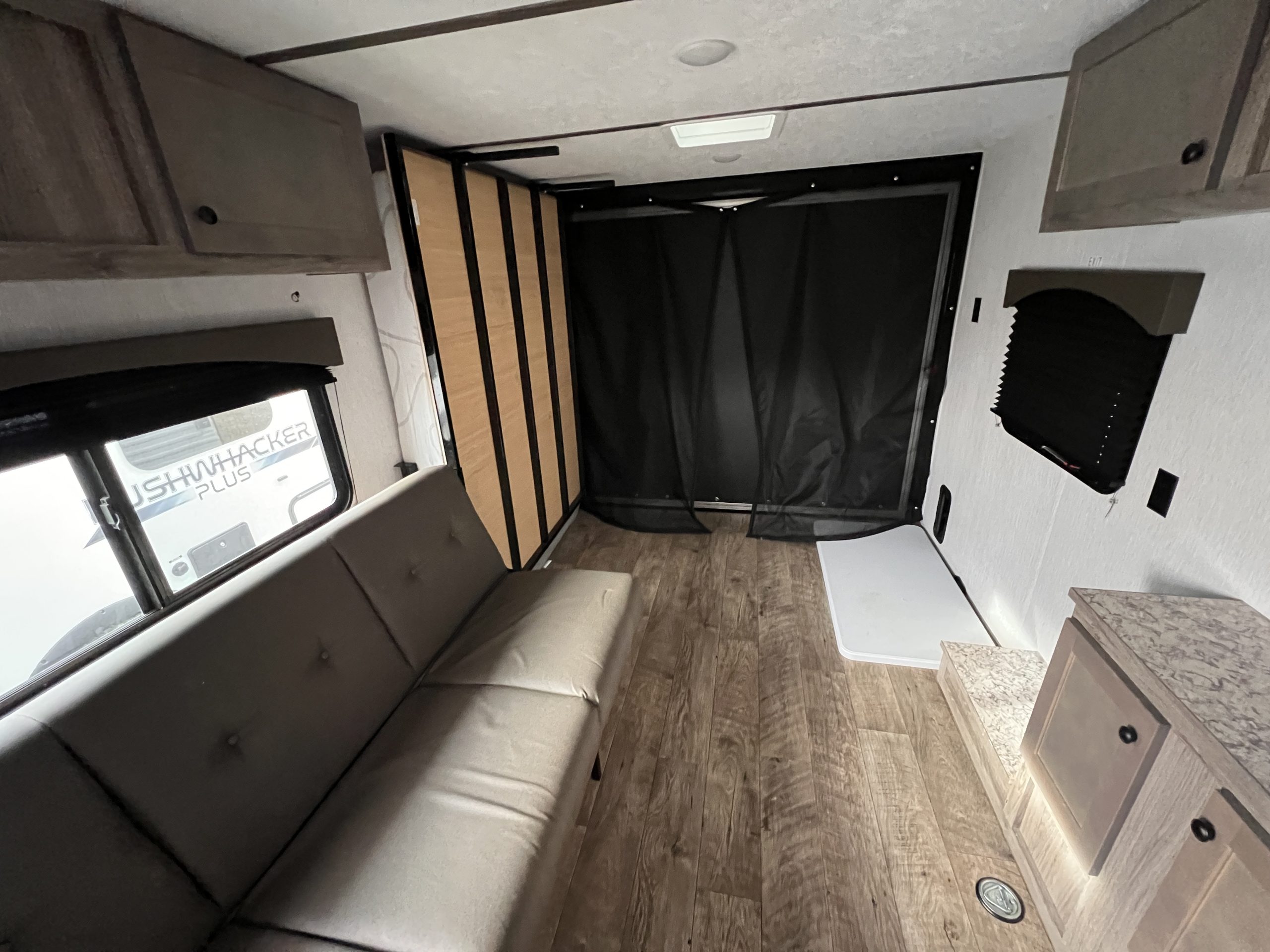 This Sun-Lite 21TH is a nice smaller toy hauler with everything that is only 3,050 pounds dry weight. There is a front kitchen with refrigerator, sink, microwave, stove and oven. There is a furnace and A/C. The bathroom has a large step in shower and toilet. The sofa folds up against the wall and makes a bed. In the rear there is a fold down bed also. The toy hauler has d-rings on the floor to aid in tying down your toys.
